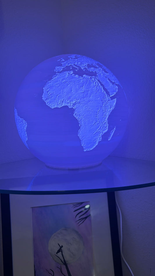 Illuminated 3D Globe Lamp with Detailed Topography and Color-Changing LED